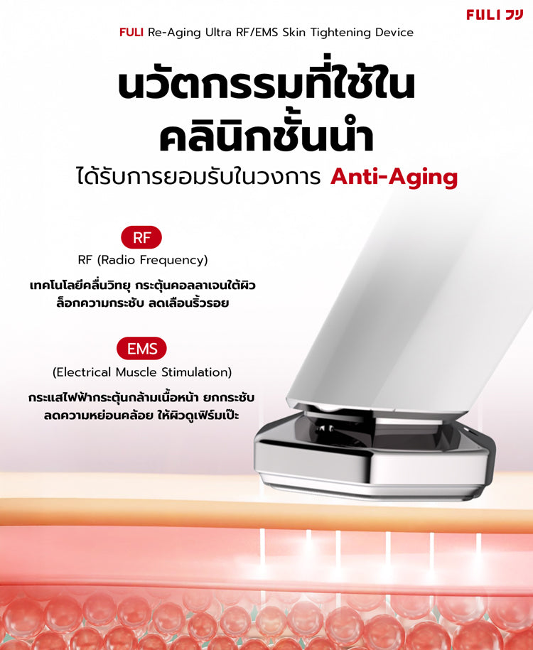 Re-Aging เครื่องยกกระชับใบหน้า ด้วยคลื่นความถี่วิทยุสลายไขมัน Ultra RF/EMSRe-Aging Ultra RF/EMS Skin Tightening Device